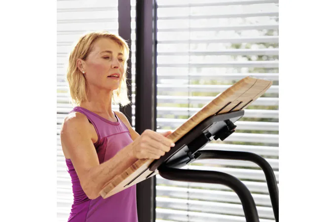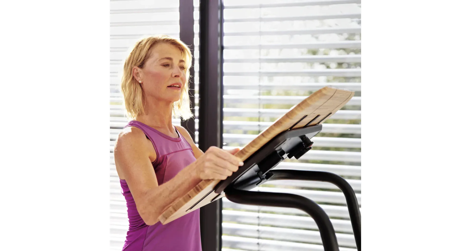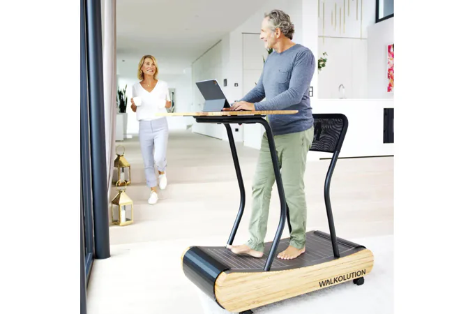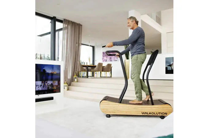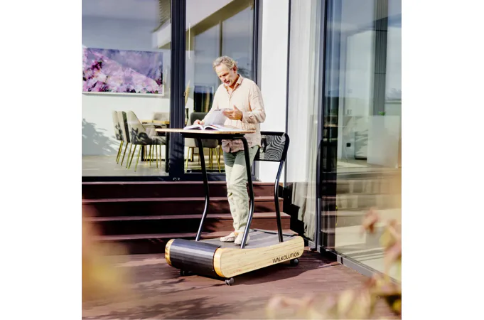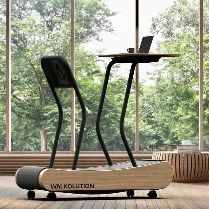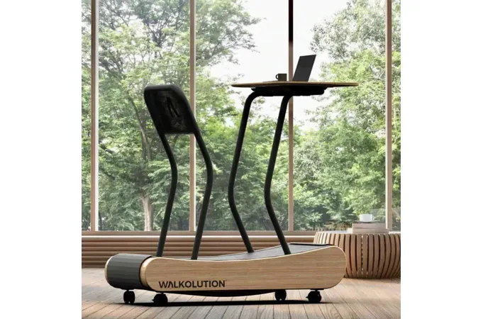 Designově nadčasový bezmotorový pás MTD700R s integrovaným stolem od značky WALKOLUTION má vyhlazený, zakřivený design rámu z luxusního masivního bukového dřeva a oceli. Díky zakřivenému tvaru poskytuje stroj velmi přirozený pocit při běhu na prostorné běžecké ploše (47 x 140 cm) a navíc je velmi šetrný ke kloubům.