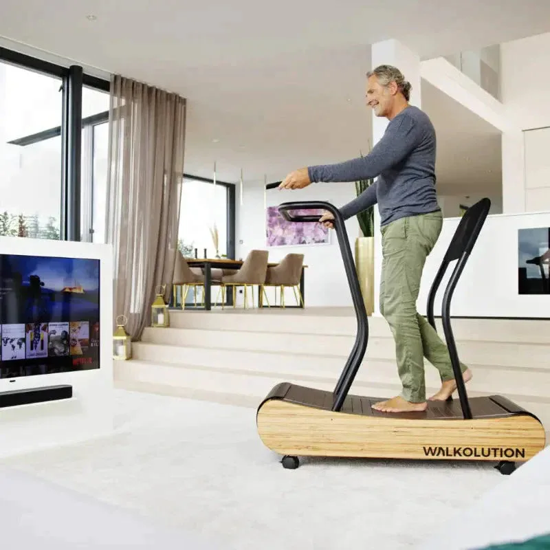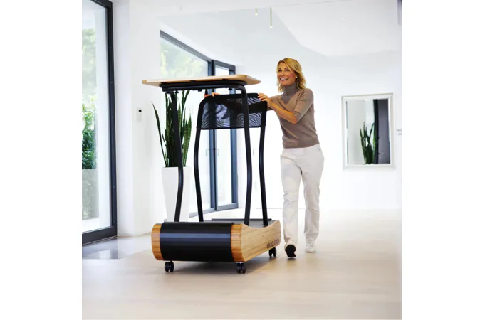 Designově nadčasový bezmotorový pás MTD700R s integrovaným stolem od značky WALKOLUTION má vyhlazený, zakřivený design rámu z luxusního masivního bukového dřeva a oceli. Díky zakřivenému tvaru poskytuje stroj velmi přirozený pocit při běhu na prostorné běžecké ploše (47 x 140 cm) a navíc je velmi šetrný ke kloubům.