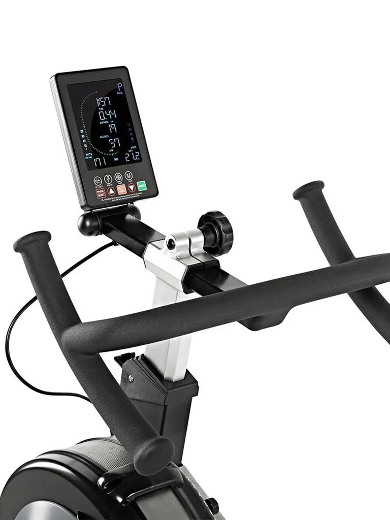 Trenažér Air Bike XEBEX Air CYCLE Smart Connect má kvalitní ergonomicky tvarované sedlo, které je nastavitelné ve vertikálním směru + sklon sedla. Řídítka jsou nastavitelná jak v horizontálním i vertikálním směru.