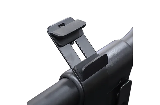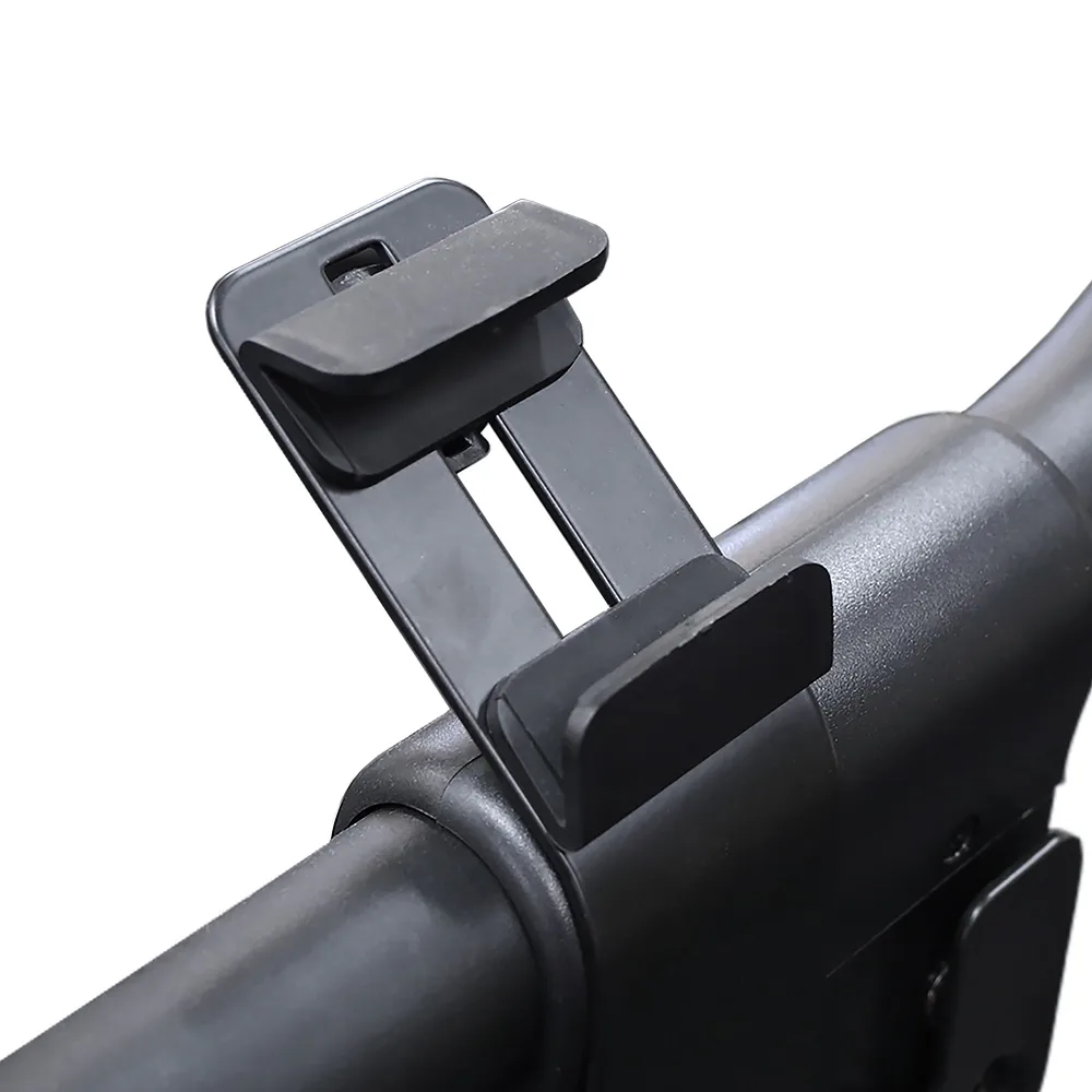 Součástí výbavy je držák na láhev s vodou a telefon.