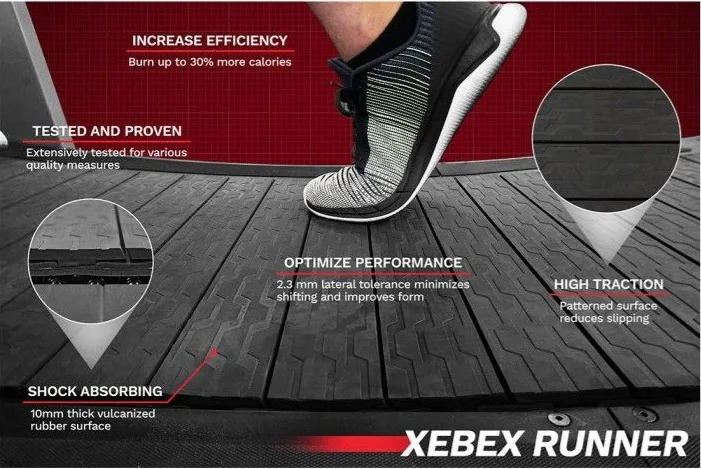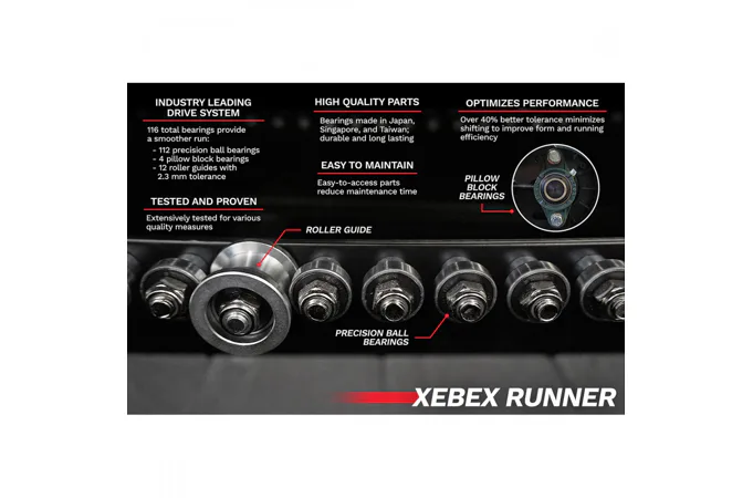 Tento lamelový trenažér XEBEX Runner amerického výrobce představuje naprostou špičku mezi běžeckými pásy. Jedná se o inovativní systém běžeckého trenažéru s lamelovou kurtou, který je ideální pro dynamiku sprintů a rozvoj vytrvalosti, výbušnosti.