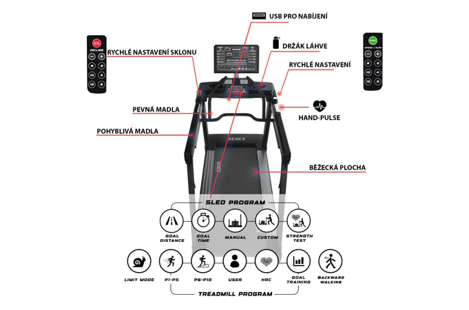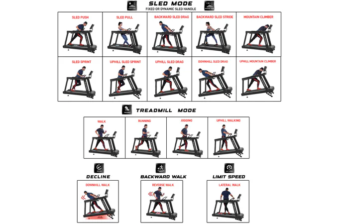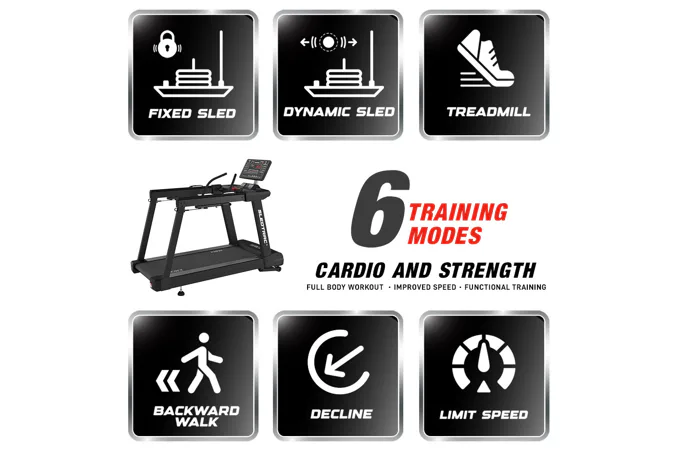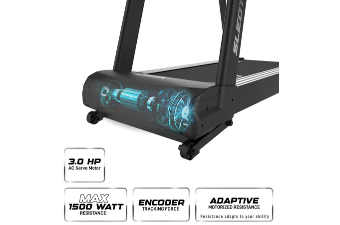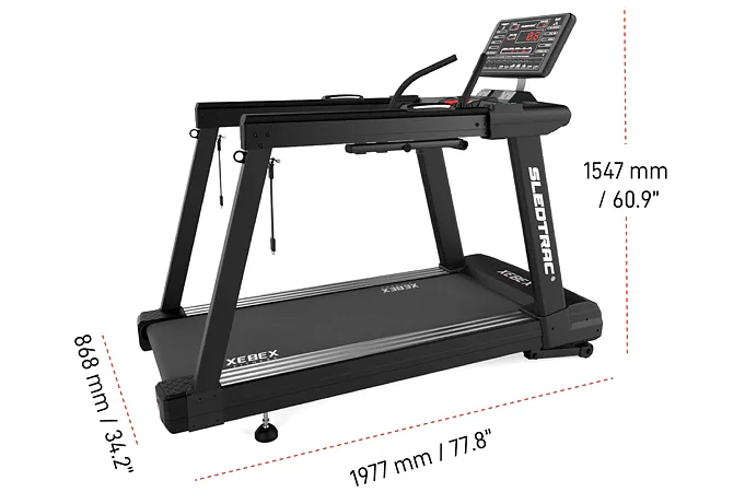 XEBEX SledTrac 6000 je profesionální běžecký pás pro ty nejnáročnější zákazníky, který je poháněn takřka nesmrtelným profesionálním AC motorem o síle 3 HP (koně) a odporu až neuvěřitelných 1500 Wattů. Předností XEBEX SledTrac 6000 je možnost běhu, chůze, tlačení saní, elektronického sklonu až do 10% úhlu, již zmíněný profesionální motor, masivní konstrukce a velmi prostorná běžecká plocha. Díky tomu můžete perfektně simulovat, chůzi, běh, tlačení saní na různé způsoby, chůze popředu i pozpátku a mnoho dalších.