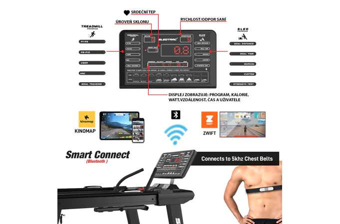 Díky Funkci Smart Connect můžete přes Bluetooth připojení spárovat trenažer XEBEX k vašemu tabletu, nebo smartphonu a používat tak při tréninku různé aplikace. Interaktivní trénink s přáteli? Skupinové závody? Personalizované tréninkové plány? Extra data a historie tréninku? Živé kurzy nebo kurzy na vyžádání? Se systémem Smart Connect, to není žádný problém.