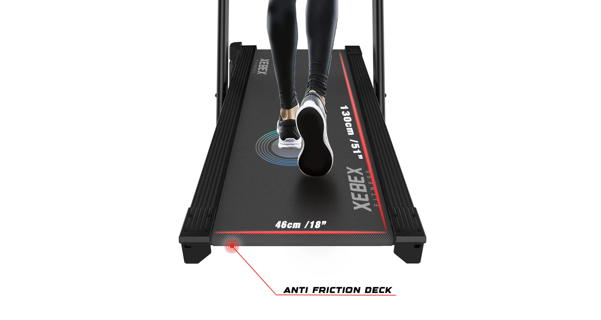Setrvačník XEBEX Trekker 4000 váží 3,6 kg a podporuje plynulost chůze i běhu. Díky patentovanému systému odporu pomocí generátorů dokáže pás vytvořit dostatečný odpor nezávisle na setrvačníku.