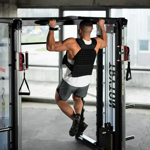 Vesta TKO je vybavená dvoma vyberateľnými záťažovými doskami, ktoré umožňujú nastavenie hmotnosti a prispôsobenie aktuálnym tréningovým cieľom. Vďaka tomu môžete upraviť obtiažnosť cvičenia a efektívne rozvíjať silu, vytrvalosť a výbušnosť svalov. Silné, polstrované ramenné popruhy a optimalizované rozloženie záťaže zaisťujú, že vesta je mimoriadne pohodlná aj pri dlhých tréningoch.