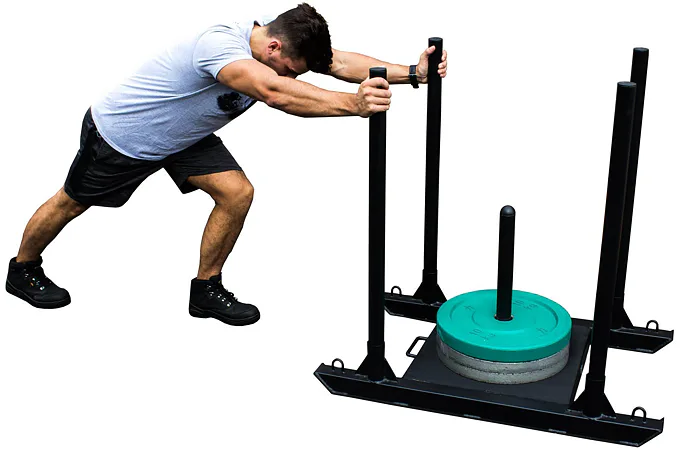 Na sane STRENGTHSYSTEM POWER SLED umiestnite veľmi jednoducho kotúče, vďaka ktorým docielite vysokú variabilitu záťaže. Správne by sa mali použiť kotúče olympijské, na ktoré je uprostred saní pripravený tŕň 50 mm. Možno tiež využiť iba vlastnú váhu saní, ktorá je 35 kg. Sane je možné použiť takmer na každom povrchu v domácom či komerčnom prostredí.