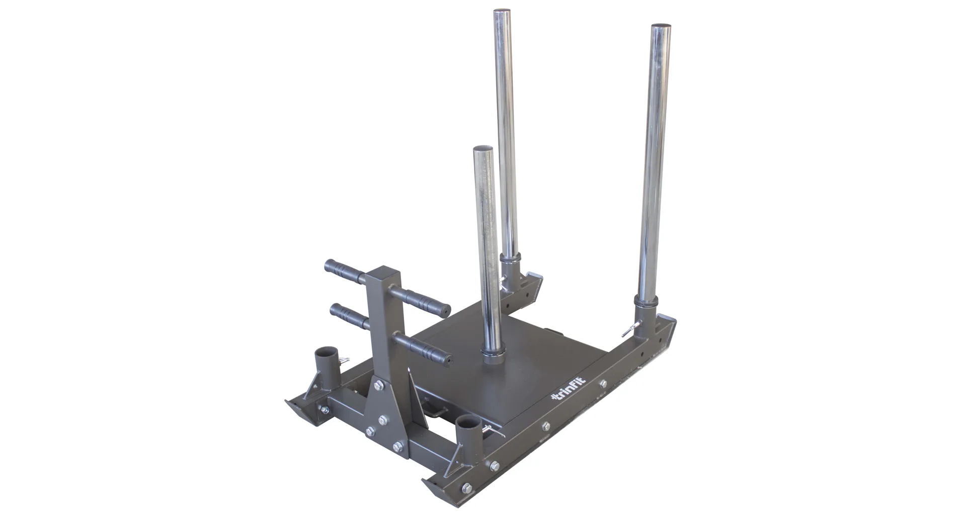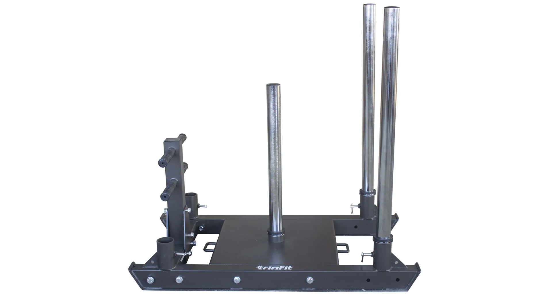 TRINFIT Power Sled Pro je vybavený 3 nakladacími tŕňmi s priemerom 50 mm a z toho 2 predné tŕne slúžia zároveň ako rukoväte na tlačenie saní. Na spomínané tŕne olympijského priemeru môžete naložiť až 300 kg v kotúčoch. Vďaka tomu sa môžete v dlhodobom horizonte zlepšovať a postupne pridávať váhu podľa potrieb. Sane je možné použiť takmer na každom povrchu v domácom či ľahko komerčnom prostredí.