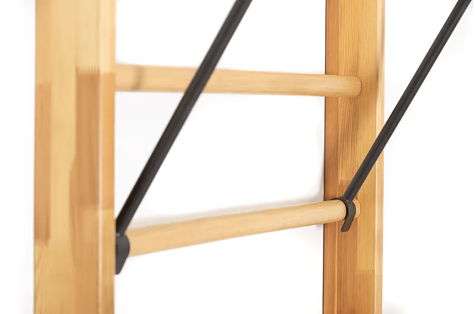 Závesnú hrazdu VIFITO veľmi ľahko zavesíte na ribstol do vami požadovanej výšky. Na to slúžia dva šírkovo nastaviteľné háky, ktoré jednoducho zavesíte na ribstol. Hrazdu potom zafixujete na rebrinách dvoma podperami, ktoré je možné tiež nastaviť podľa požadovanej šírky.