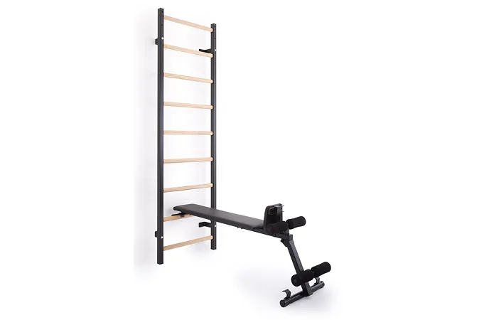 Ďalším benefitom je odnímateľný sedák, ktorý poskytuje ideálnu oporu pre tlakové cviky v sede alebo náklone. Lavička je vybavená polohovateľnou opornou nohou, takže si ju jednoducho prispôsobíte svojim potrebám. Vďaka možnosti úplného zloženia môžete lavičku efektívne zavesiť na rebriny, čo šetrí miesto a zabezpečuje, že budete mať posilňovňu vždy usporiadanú.