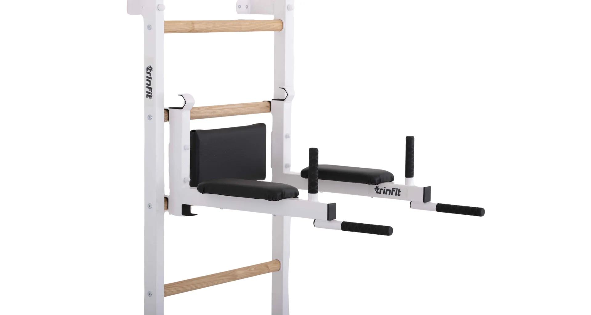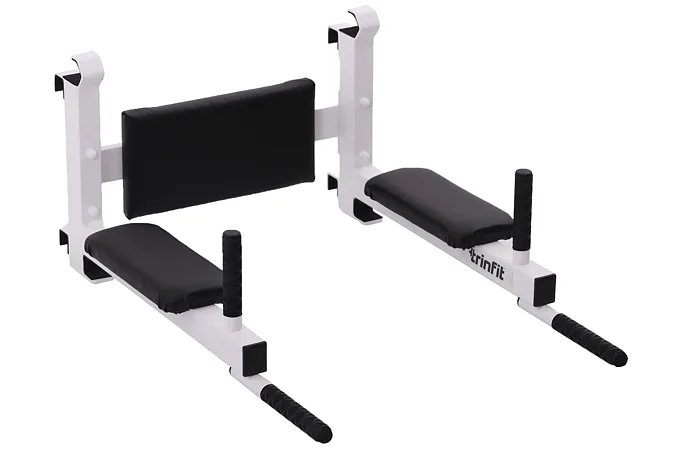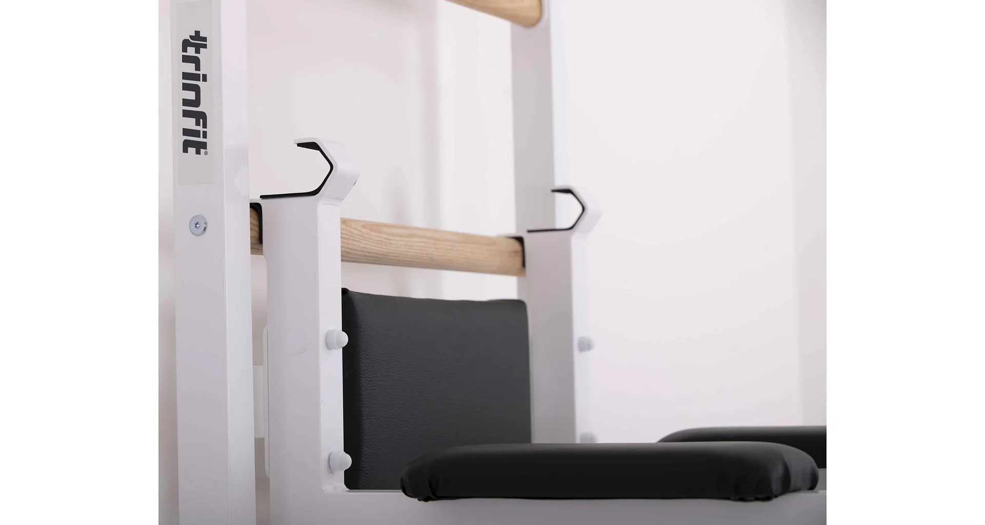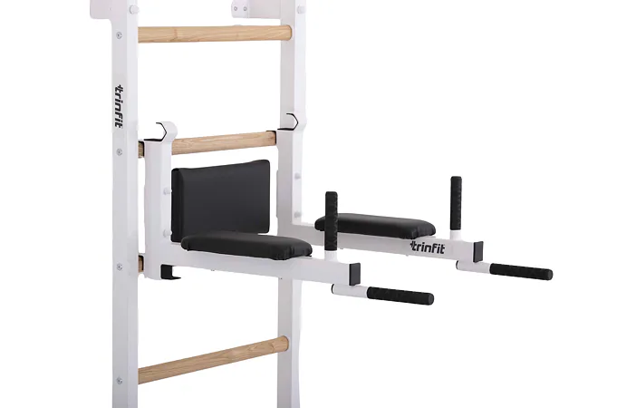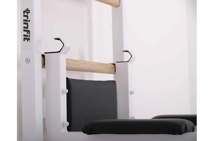 Závesné bradlá s predkopmi na ribstol TRINFIT Elegance sú určené na zavesenie na ribstol TRINFIT Elegance. Bradlá sú vyrobené z hrubostennej ocele, ktorá je ošetrená odolným práškovým lakom v elegantnej bielej farbe a polstrovanie je potiahnuté prémiovou syntetickou kožou. Vďaka použitiu hrubostennej ocele a odolného vypaľovaného laku, sú bradlá veľmi odolné. Či už ste začiatočník alebo profík, závesné bradlá s predkopmi na ribstol TRINFIT Elegance budú perfektnou voľbou!