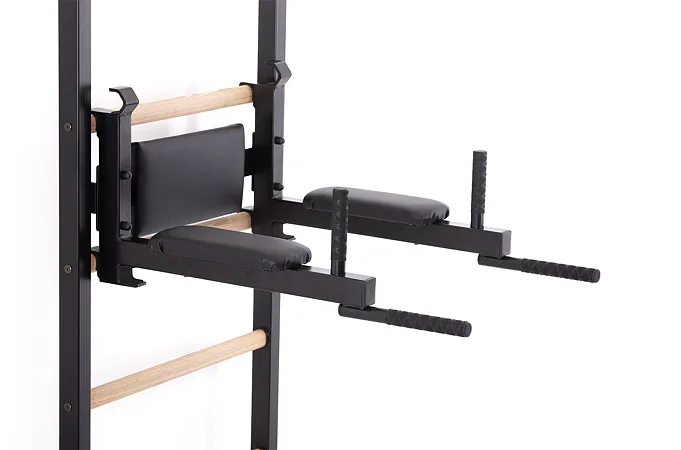 Závesné bradlá s predkopmi na ribstol TRINFIT Elegance sú určené na zavesenie na ribstol TRINFIT Elegance. Bradlá sú vyrobené z hrubostennej ocele, ktorá je ošetrená odolným práškovým lakom v elegantnej čiernej farbe a polstrovanie je potiahnuté prémiovou syntetickou kožou. Vďaka použitiu hrubostennej ocele a odolného vypaľovaného laku sú bradlá veľmi odolné. Či už ste začiatočník alebo profesionál, závesné bradlá s predkopmi na ribstol TRINFIT Elegance budú perfektnou voľbou!