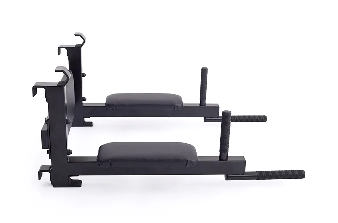 Ďalšou významnou výhodou týchto bradiel je ich funkcia stojana na veľkú os. Pri zavesení bradiel na špeciálne závesné háky sa z nich stáva praktický stojan na činku, ktorý v kombinácii so závesnou lavičkou TRINFIT Elegance umožňuje vykonávať cviky, ako je bench press alebo tlaky na ramená s veľkou osou. Po dokončení série môžete činku bezpečne a pohodlne odložiť do držiakov na os, čo prináša vyššiu bezpečnosť a komfort pri cvičení. Tento multifunkčný dizajn výrazne rozširuje možnosti tréningu, a to všetko s minimálnymi nárokmi na priestor.