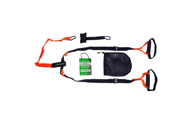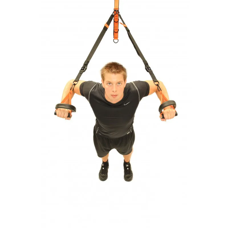 Závesný systém TUNTURI SUSPENSION TRAINER je efektívny nástroj pre domáce posilňovanie v podobe popruhov na tréning kdekoľvek. Ako odpor používate váhu vlastného tela a rôznymi variáciami/polohami pri cvikoch regulujete obtiažnosť cvičenia. Intenzitu je možné zvýšiť či znížiť zmenou postoja cvičenca oproti závesnému bodu. Je neuveriteľné ako posunutie tela iba o pár centimetrov zmení intenzitu vykonávaného prvku. V každý okamih alebo po každom opakovaní si je možné intenzitu veľmi ľahko prenastaviť. Čím sme nižšie pod závesným bodom, tým sa intenzita zvyšuje a naopak. Najlepšia intenzita je taká, aby sme vnímali, že posledných pár opakovaní sa vykonáva takmer do úplného vyčerpania svalovej sily.